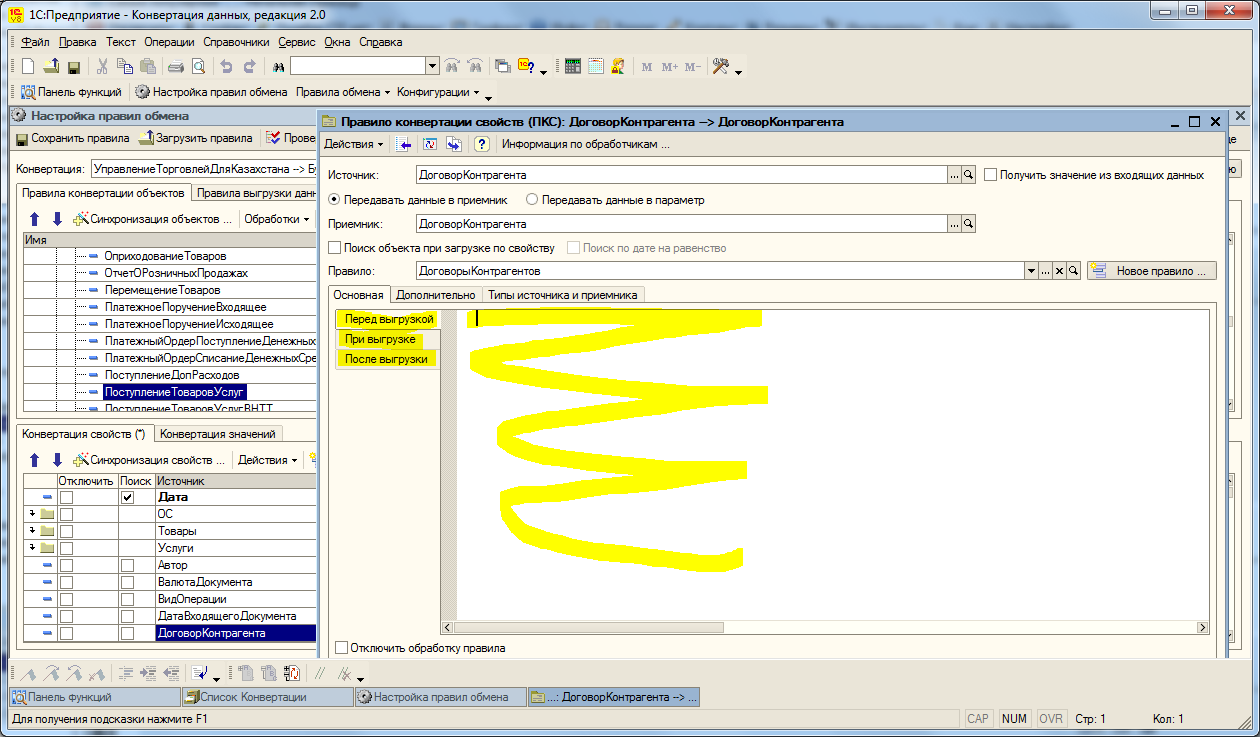 This window is related to individual configuration "1С:Data conversion". You can try to find any examples of "ExternalDataProcessors" with triggers for pre-processing documents on XML-import in 1C. "1С:Data conversion" just automatically create such processor scripted by your rules.kvasilev wrote:from where I can start this window "настройка правил обмена"
